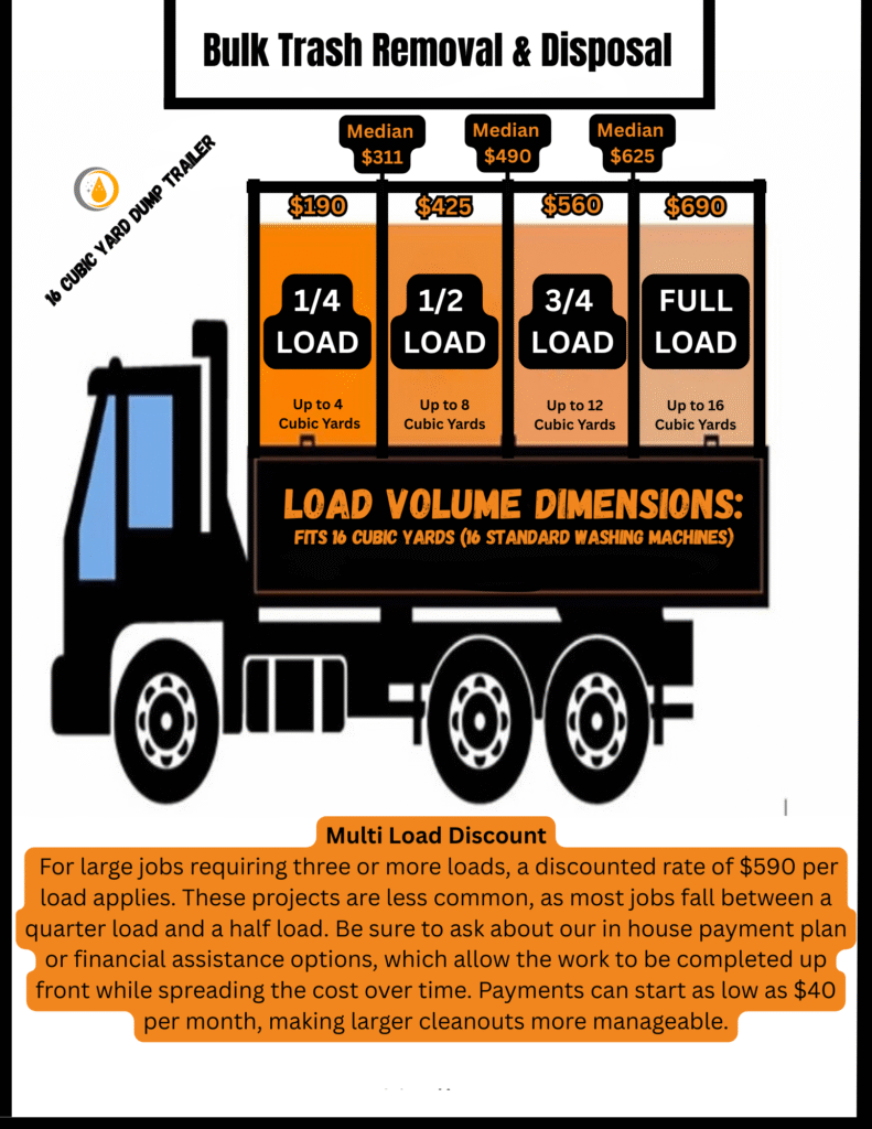 • garbage haul away and disposal are handled separately and priced based on load volume with the chart below: